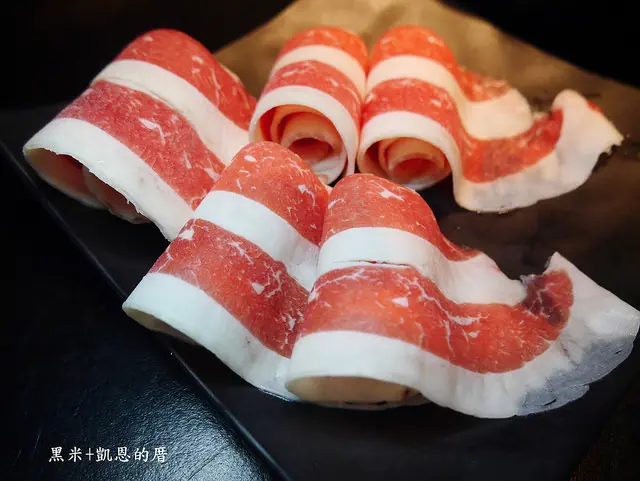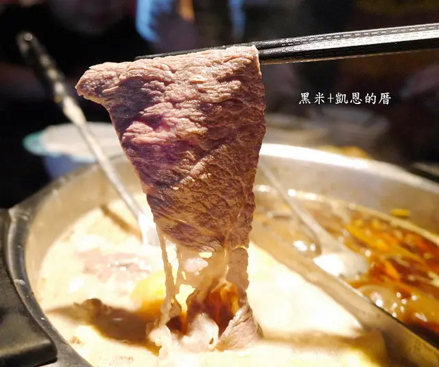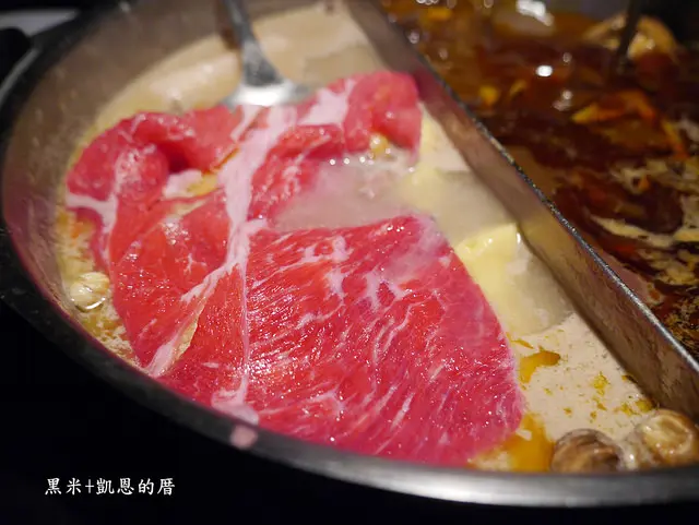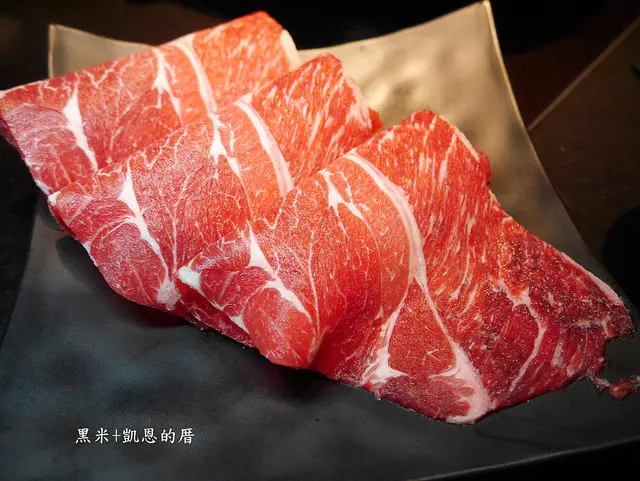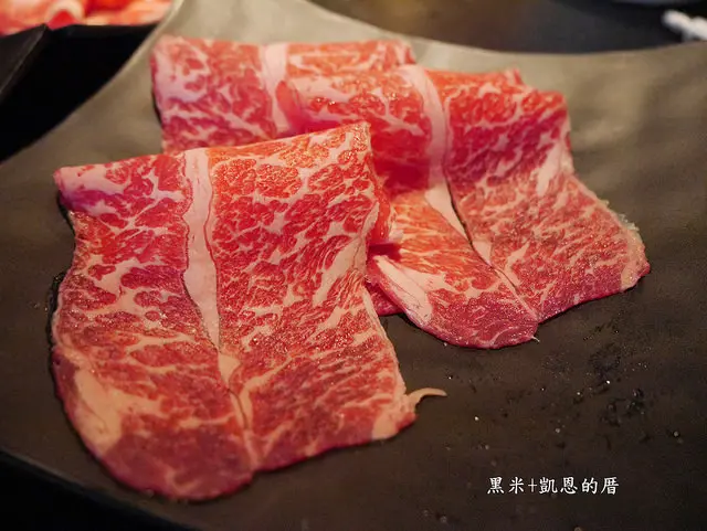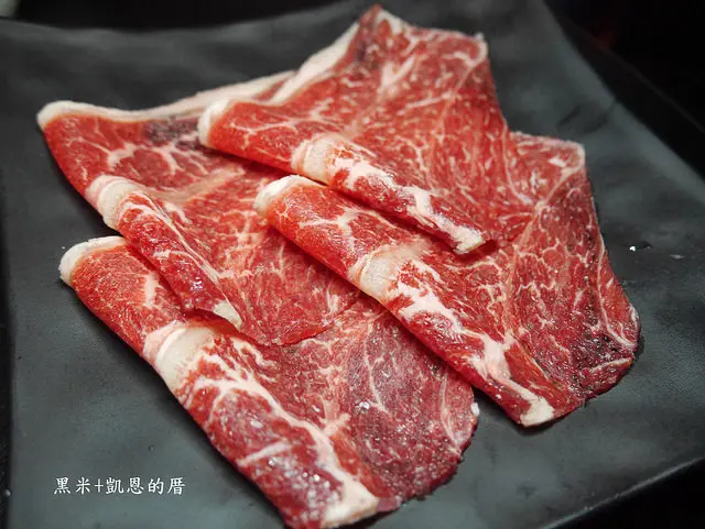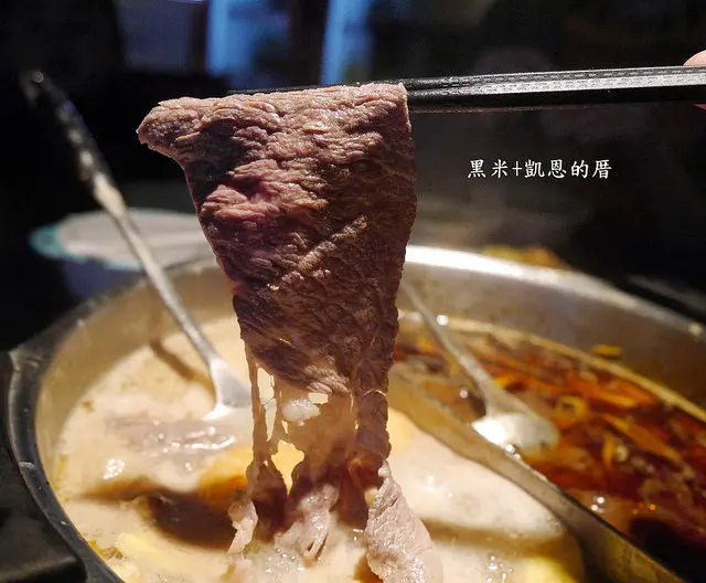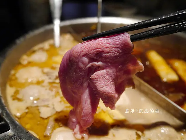 涮好後的肉片不會很油,可能是先吃了安格斯黑牛,牛五花就覺得還好