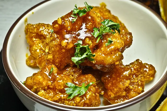 這炸雞選用的是雞腿肉, 裹滿韓式醬汁炸到酥脆, 非常好吃