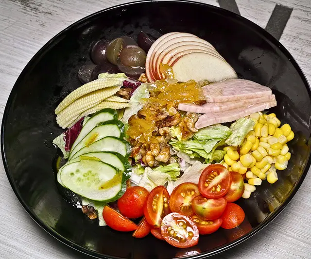 沙拉總扯不上韓國菜了吧, 一般不就是蔬菜加上像義式油醋或作成凱薩沙拉, 最多來個日式沙拉醬......