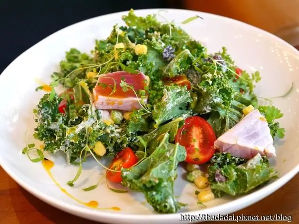 櫻桃番茄、毛豆..等品質ok,還灑了一些藜麥,鮪魚赤肉稍微炙過,
