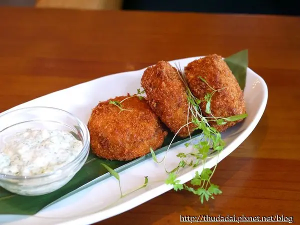 鮪魚甘藍沙拉、黃金蟹肉餅、吮指祕製西瓜燒烤醬豬肋排、
