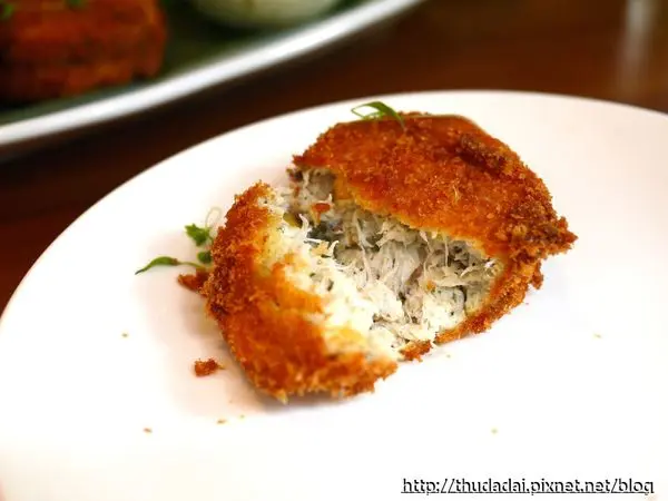 油瀝得乾淨、酥脆,彈牙扎實的絲狀蟹肉,