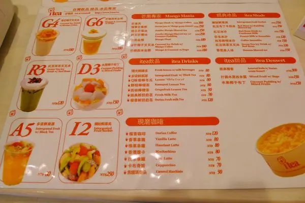 店裡店外都有貼著ITEA芒果專家主打商品的照片.霸王芒椰冰.經典柳香.芒果爽.每個都讓人口水直流