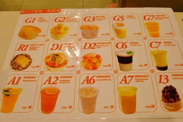 往店裡面探個究竟.另一個版子貼著主打商品的圖片.每個冰品和金撈都有滿滿的芒果