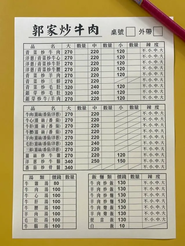 菜單價位、份量清楚,連辣度都兼顧到了,設計的不錯~