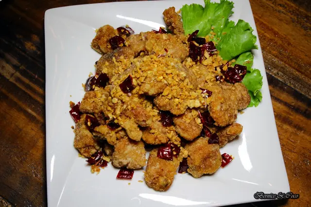 夾了一塊搭著上頭的蒜酥一起吃,鹹香夠味,是一道很好的下酒菜料理
