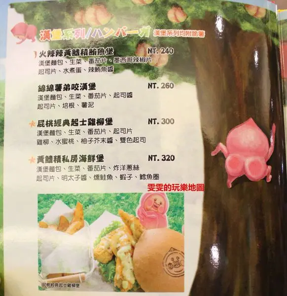 漢堡皮還是粉紅色的呢,上頭還印著個屁桃