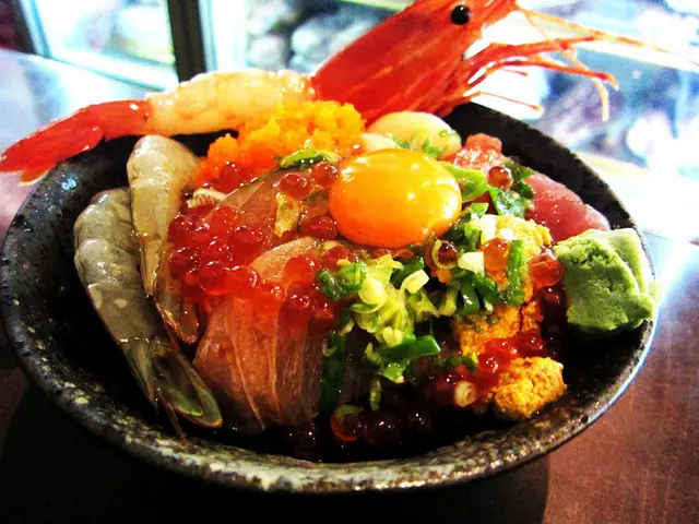 份量100的海鮮滿滿美妙的鋪在白飯上