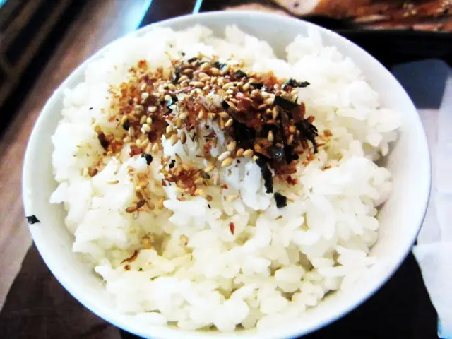 灑上芝麻香鬆的白飯...不配菜就很好吃了捏....