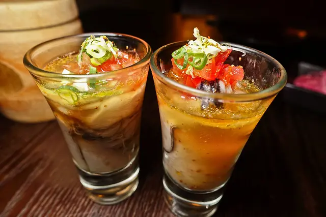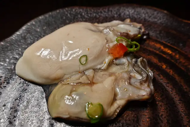 A 生蠔特調 2份 炙燒鱈魚肝沙拉 各1份 澳洲頂級和牛三角肉 黑糖豬五花 各1串 花雕雞肉串 櫛瓜 各1份 2星期限定菜 鹽烤燕冬 奶油蒜香蛤蜊湯 2碗