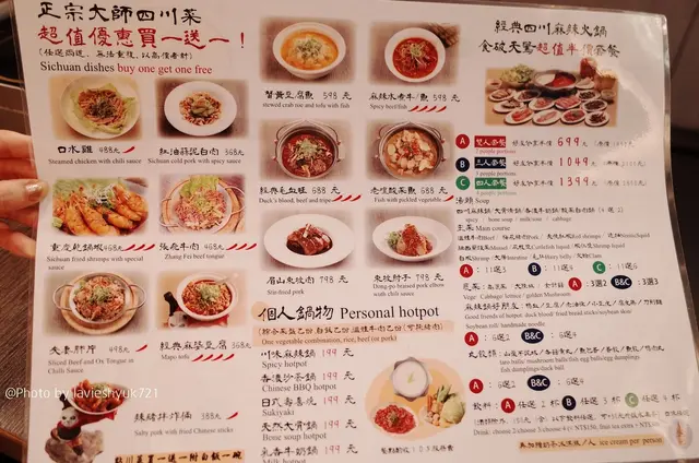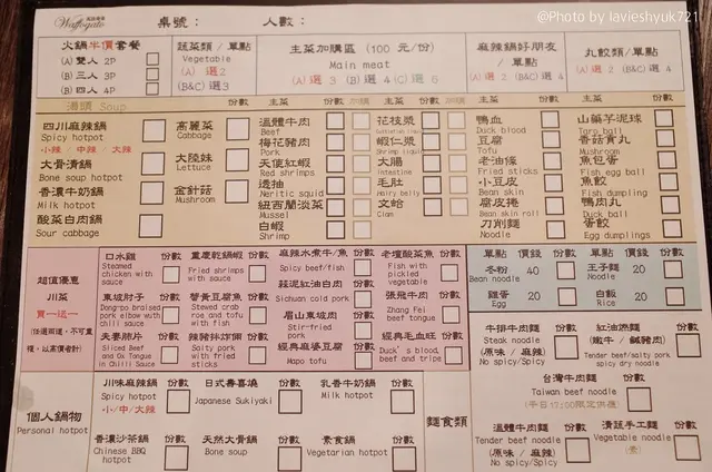 四川菜目前有買一送一活動,還附白飯一碗,豐富菜色例如口水雞、麻婆豆腐、夫妻肺片、經典毛血旺、重慶乾鍋蝦、蟹黃豆腐魚等。而今天點的麻辣火鍋是雙人套餐,優惠半價$699(原價$1400),湯頭4選2(四川麻辣湯、大骨清湯、香濃牛奶湯、酸菜白肉湯),依照套餐類型選擇主菜、蔬菜、配料,丸餃及飲品。