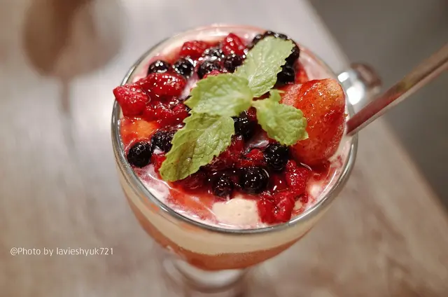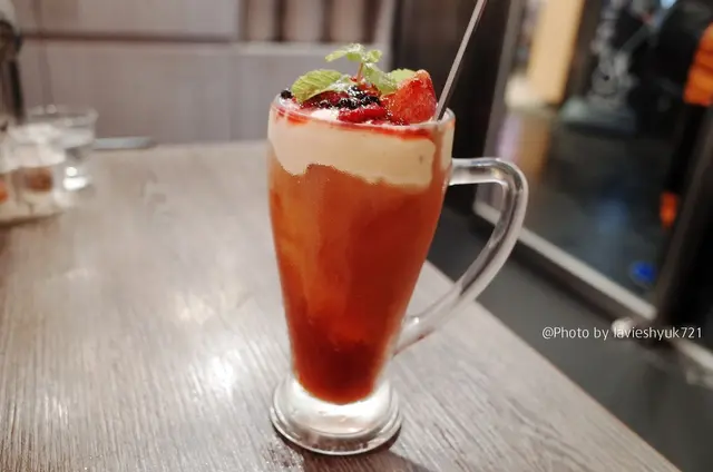 不只是店家推薦必點,我個人也很推【綜合莓果奶蓋】,造訪前我就先上網做過功課,好大一杯真材實料又好喝,上頭超厚實奶蓋,鋪上滿滿熱情莓果,冰冰涼涼又酸甜,超適合夏天,是女孩們會愛不釋手的滋味。