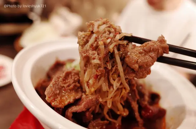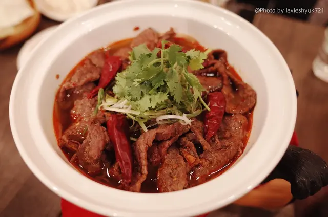【麻辣水煮牛】相較剛才的酸菜魚~辣度算蠻高的,對平常吃小辣的我來說~中間要停下來喝口飲料才行,但它的辣香勁爽~讓人不自覺想一口接一口。