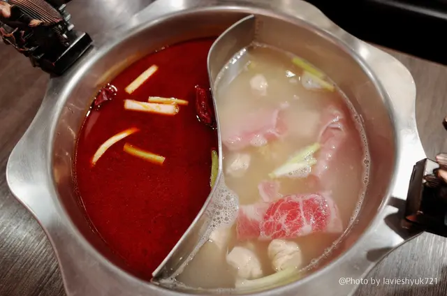 愛吃酸&辣的我們~湯頭直接選了「四川麻辣鍋(小辣)」及「酸菜白肉鍋」。