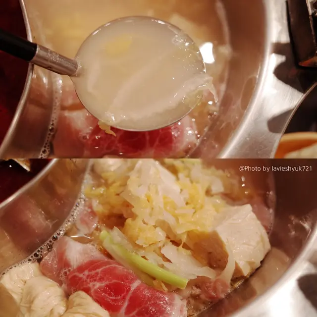 非常熱愛酸菜白肉的我怎可能錯過這一鍋,裡頭滿滿切得細絲的酸菜,越煮越是清爽酸香,涮起食材很入味,湯頭真的可以喝好幾碗~