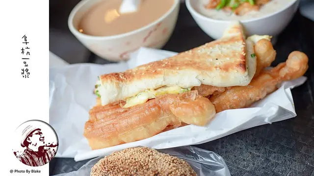 阜杭豆漿必點厚燒餅夾蛋夾油條與鹹豆漿