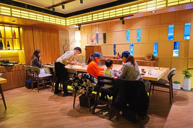 用餐的空間則是採用大量的木質色系,搭配木作的屏風,營造出濃濃的日式風情