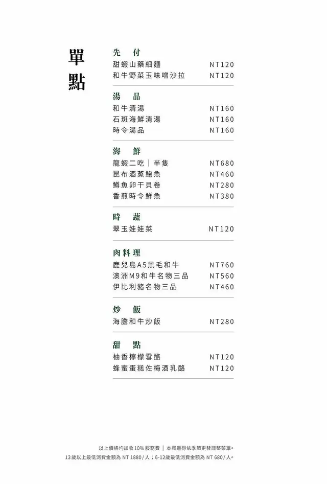 如果喜歡單一品項的美味,也能用單點的方式加點,