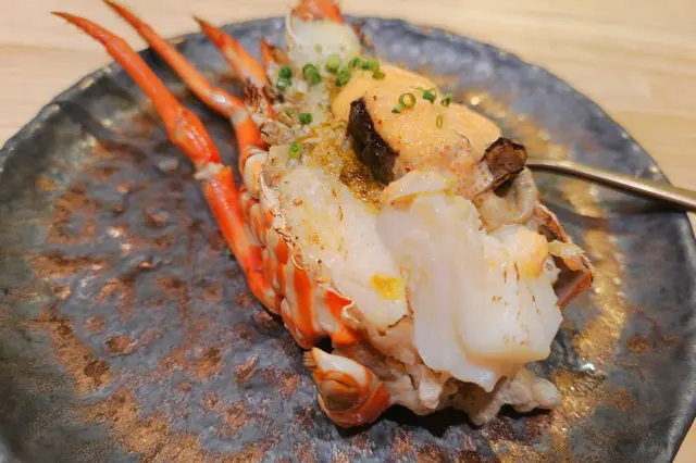 採日本傳統甲羅燒烹調手法,加入鮑魚肝及明太子炙燒添濃郁鮮美,