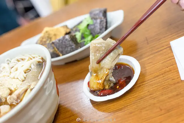 光是看湯體就覺得這麻油雞湯很濃厚,一入口果然沒錯,帶有一點酒香跟麻油的香氣很溫醇,入胃之後整個人都是暖呼呼的,相較施家麻油腰花來說,《阿圖麻油雞》的酒香比較明顯一些,裡面的雞肉大概有五塊,有腿肉也有胸肉部位,吃起來不會太柴,胸的部份略乾一些,沾點醬來吃倒是還好。