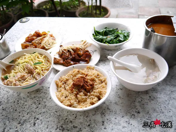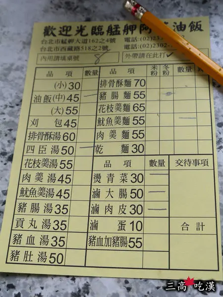 中碗油飯、四臣湯、魷魚羹麵、滷大腸、滷肉皮、再燙碗青菜,