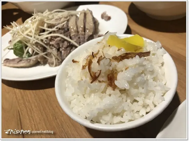 鵝油白飯有粒粒的感覺,略黏又有香氣,鵝油的油香及鹹度讓白飯又加分不少,算是滿順口的鵝油飯來的。