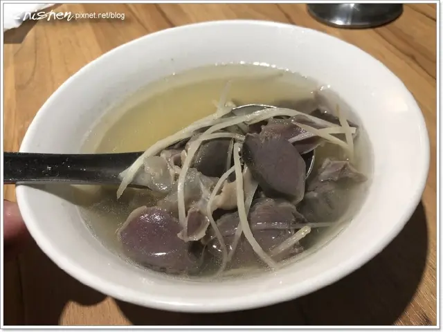 Ω下水湯以部位來說多是鵝胗來的,片的厚度滿剛好的,可以吃得到不錯的彈脆口感。