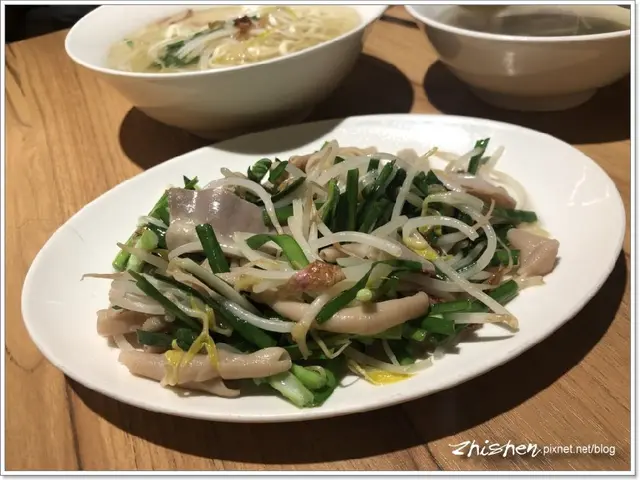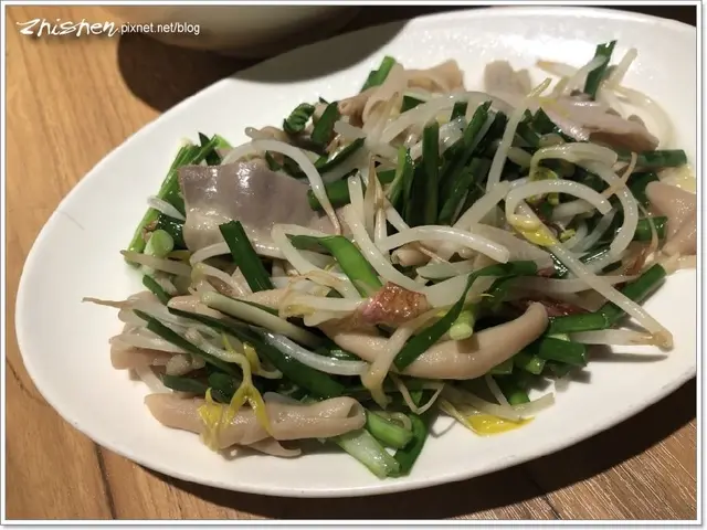 韭菜鵝腸主要的是韭菜及豆芽,雜類的話,裏頭有鵝腸也有腱頭的影子,川燙後再淋點靈魂的鵝油提味,樸實耐吃。