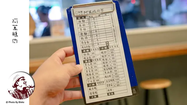 阿萬鵝肉菜單主要就是以麵實為主,有油麵、米粉、冬粉、意麵、粄條與陽春麵等等,比較特別的就是鵝油扮麵,然後有分大小碗跟湯的或乾的,小碗大部份都是35元,大碗價格是55元,白飯跟鵝油飯是一樣的價格,當然會點鵝油飯,另外還有一些鵝肉不同位置的切盤,鵝肉有煙燻鵝跟鹹水鵝兩款,都是秤重計價,最低消費一盤是200元。