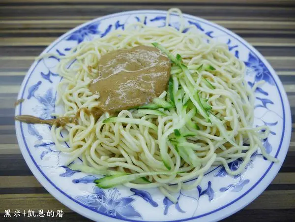 少許的黃瓜絲,涼麵醬看起來少少的,將整盤麵和勻是足夠的