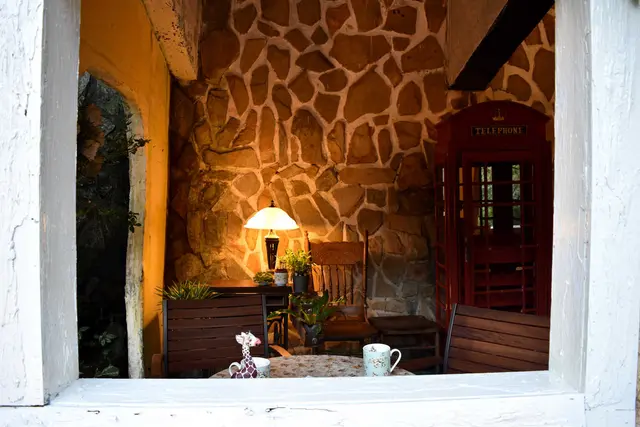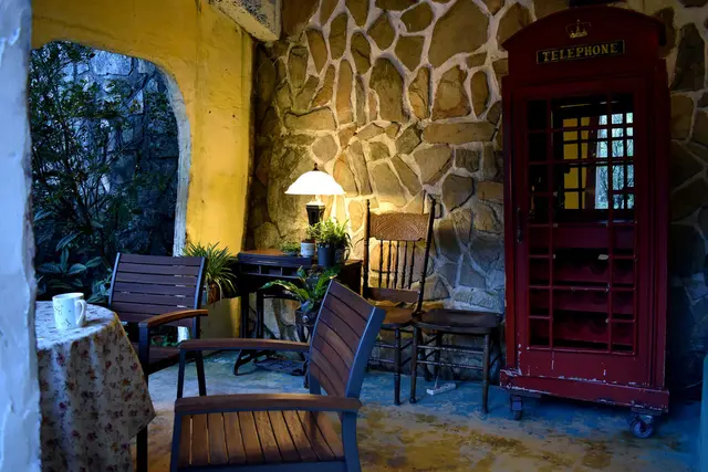這種帶點鄉村歐風與石壁黃燈的擺設