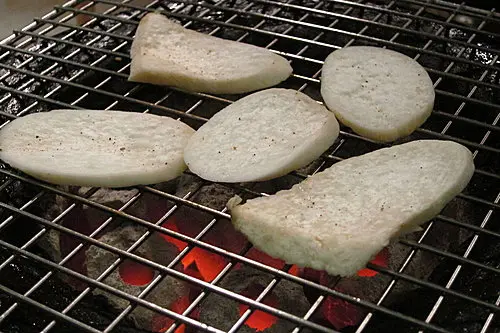 杏鮑菇好吃喔~~烤一面烤到出水珠就可以吃囉~~