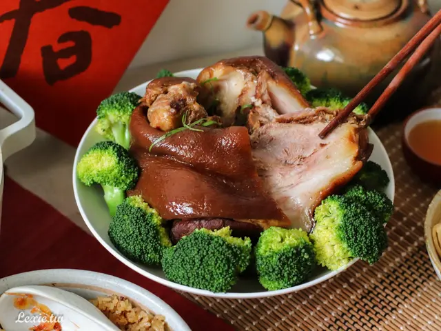 蹄膀真的好大一圈,電鍋加熱就完成!擺盤可以燙一顆花椰菜排一圈,看起來就像完全重現大餐廳菜色,非常的大器好看!