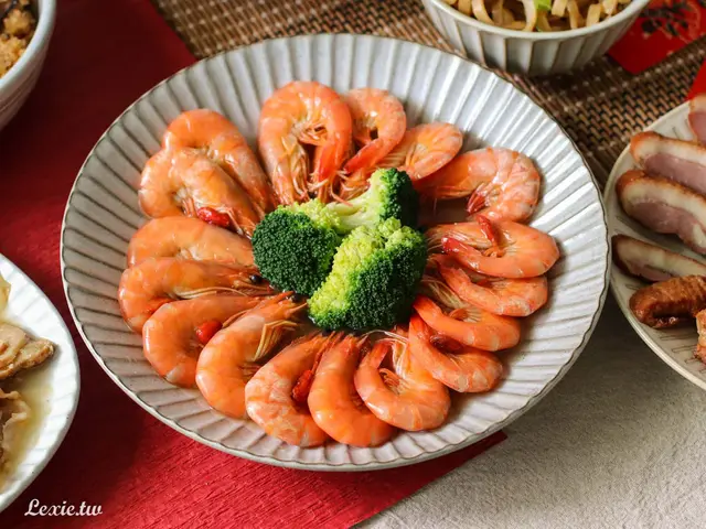 有一盤紅通通的蝦蝦,擺起來就覺得很有年味。蝦子浸泡在滿滿的湯汁裡,非常的入味充滿花雕酒的香氣,一樣是解凍直接上桌的冷盤菜,蝦的肉質算正常水準,不會粉感軟爛。
