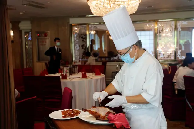位於華泰王子大飯店二樓的九華樓,這天更是第四訪了!從大廳一旁的階梯有著高雅閃亮的水晶燈飾高掛,拾級而上就是有著令人懷念的粵式料理及烤鴨。