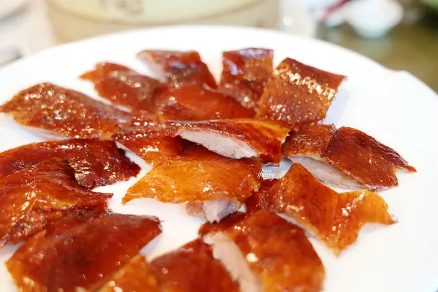 香酥的鴨皮及厚薄一致的鴨肉切成一盤。