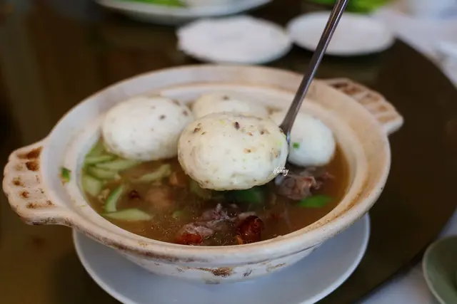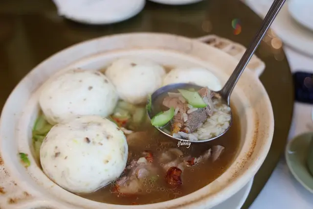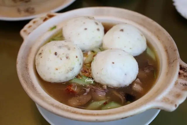 上桌後鍋蓋一開,發現這四顆白白圓圓有如棉花般的圓球,這細綿滑嫩像棉花般的口感竟然是蛋白啊!而且其間點綴著芹菜跟鴨肉,口感很特別且美味。