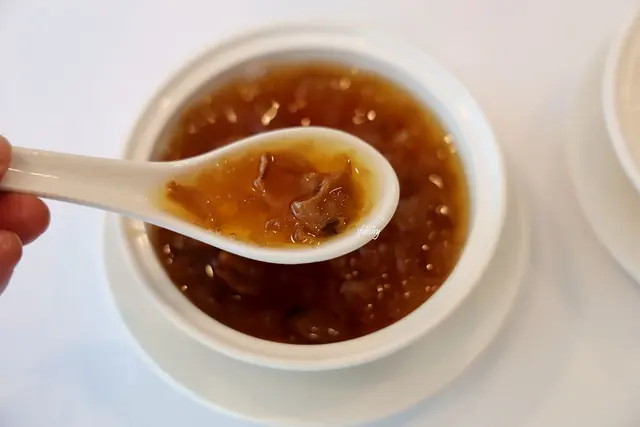 這道銀耳露意外地不會太甜,每一口都能嚐到銀耳的脆甜及桂圓肉的甜Q。