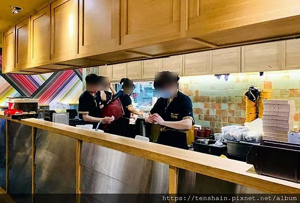 終於等到我們進場了,時間已經是 11:20 。排隊時,我仔細觀察了一下,發現店員是一組一組客人慢慢放進去,而不是一股腦把所有座位都填滿,所以我們應該也算是第一輪入座的食客。