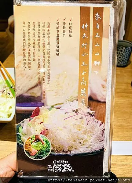 「靜岡勝政日式豬排」把高麗菜絲和山藥泥的食用方式,用精美的圖畫做了詳細的解說,不但嘉惠第一次造訪的食客,也節省了服務人員的解說時間,實在是高招!
