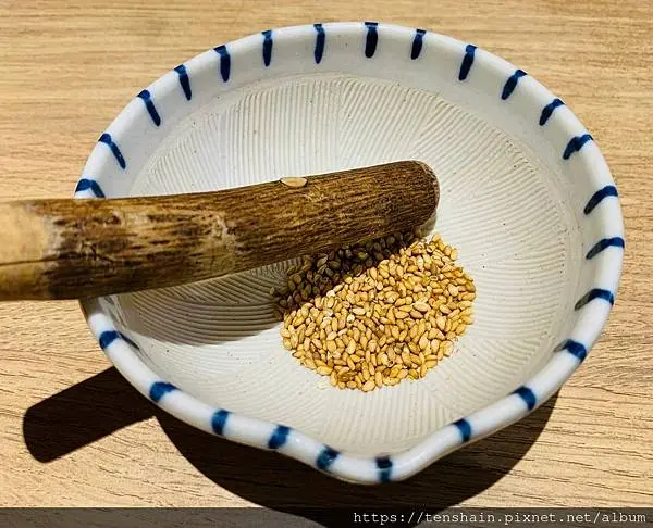 白芝麻可以增加豬排醬的香氣,所以"研磨白芝麻"就變成吃豬排前的必要儀式。不過,研磨芝麻是技術活,沒有點經驗會磨得很辛苦。