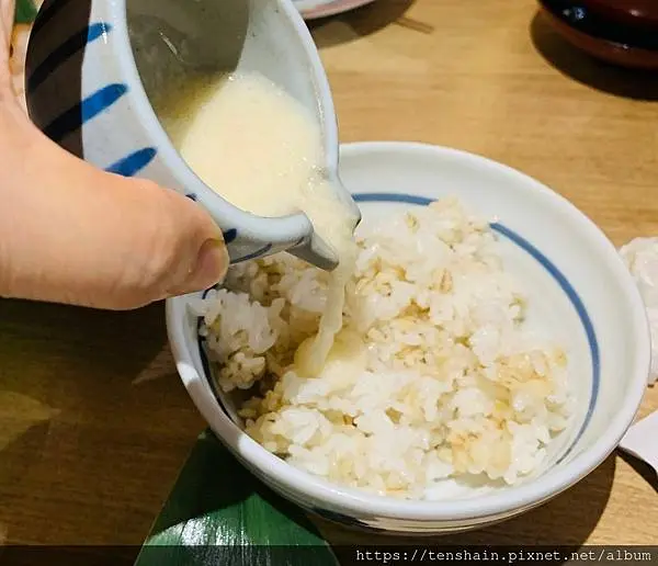 麥飯就是白飯裡頭加了燕麥,「靜岡勝政日式豬排」的白飯使用宜蘭越光米,晶瑩飽滿,透著光澤,口感軟 Q 香甜;加入麥片,多了麥片的香氣,但咀嚼時會覺得硬了一些,所以多了一小碗山藥泥,把它淋在麥飯上,可以增加入口的滑順感。但是山藥泥本身沒有什麼味道,而且磨成泥的黏稠感,可能有些人會不習慣,我就是其中之一。