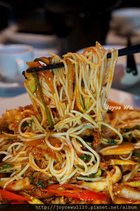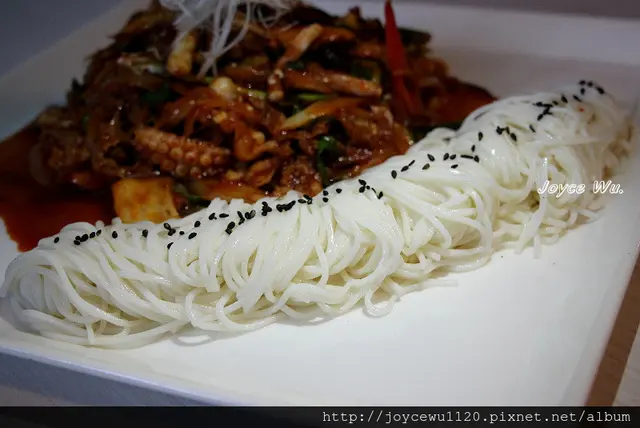 將旁邊的韓式麵線拌入其中 就變成一道主食囉