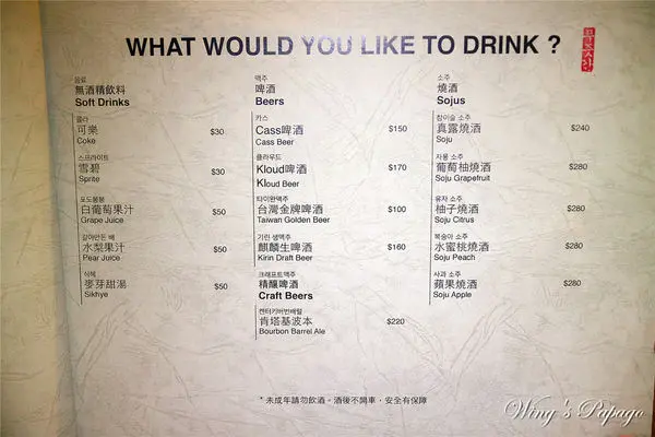 也有提供無酒精飲料及啤酒、各式酒品等。