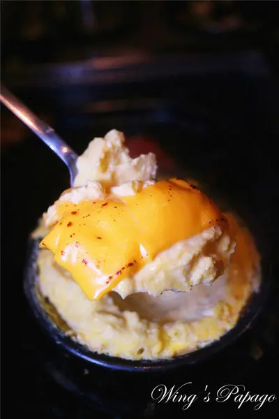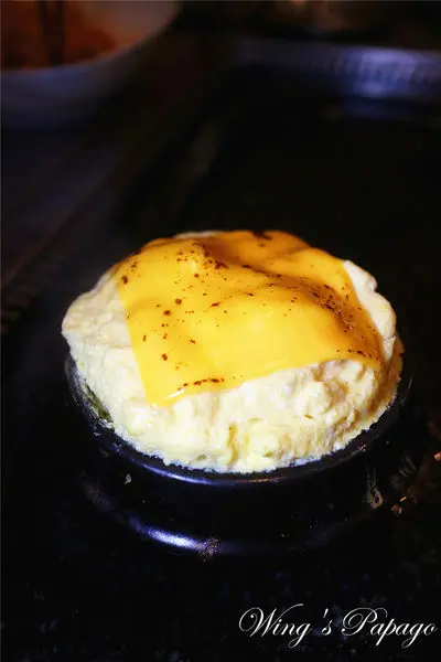 這道起司蒸蛋本身帶有微微焦香味及自然蛋香味,