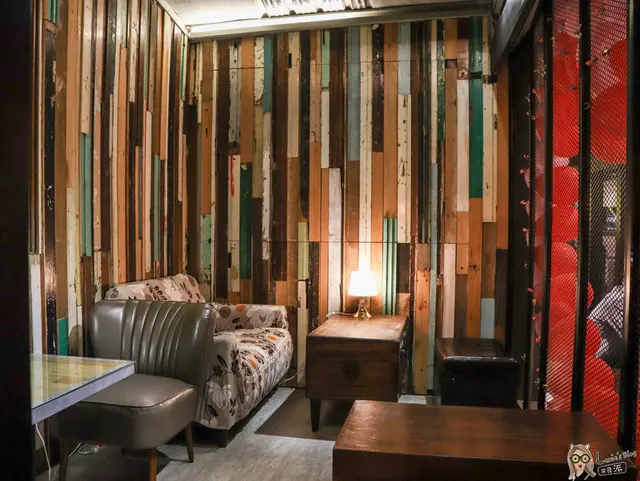 還有一間像是小包廂的房間,裡面用不同色彩的木頭裝飾牆面、配上木桌、沙發與台燈,又有另種格調