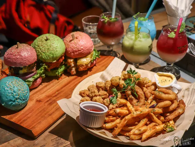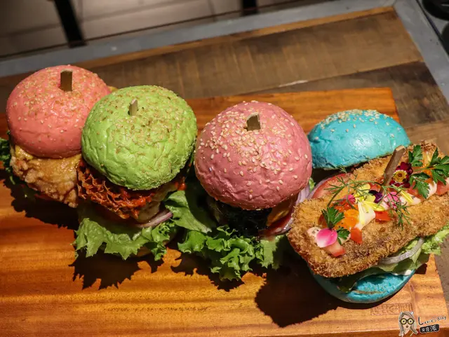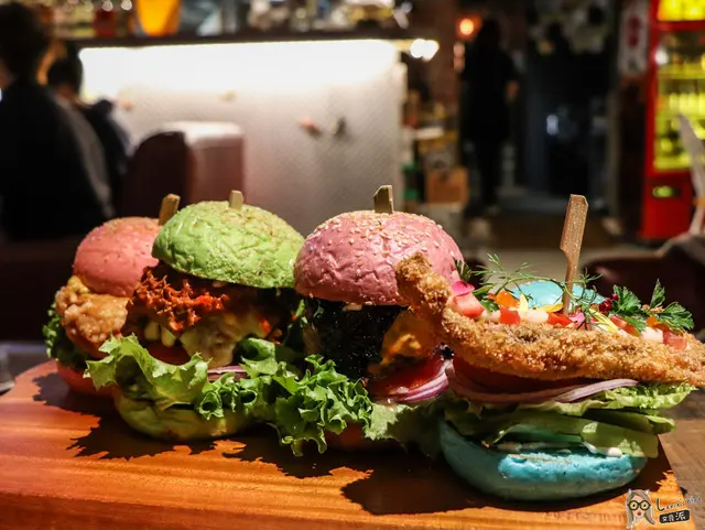 『黑熊愛跳舞』 是間風格獨特的美式餐廳,雖然賣美式漢堡,但口味上卻相當創新有特色,融合在地食材的搭配,像是高粱香腸或是岡山辣豆瓣醬牛肚等,算是台美漢堡混血兒XD。再加上五彩繽紛的麵包,實在是市面上少見,話題趣味十足。