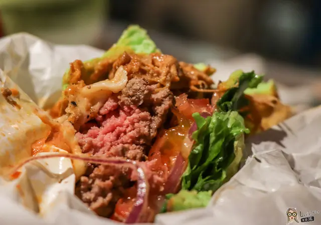 用料層層疊疊的完全沒在敷衍,非常大塊,有附漢堡紙讓你可以用手包起來吃,像我這種鳥胃女一個都快要吃不完