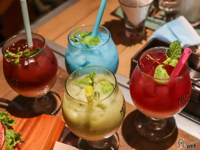 看起來很像調酒的調飲,其實都是可爾必思當基底。酸甜酸甜的口味。 兩種梅果類的口味比較類似都有葡萄的味道,藍色的口味喝起來有清新香氣,綠色則是抹茶的味道比較明顯