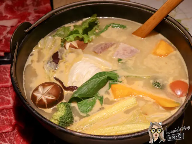 原本的湯底是用8種蔬果、老母雞、豬骨等食材熬製,這次姊吃的算是隱藏版全新鍋底-『南洋風情叻沙鍋』。